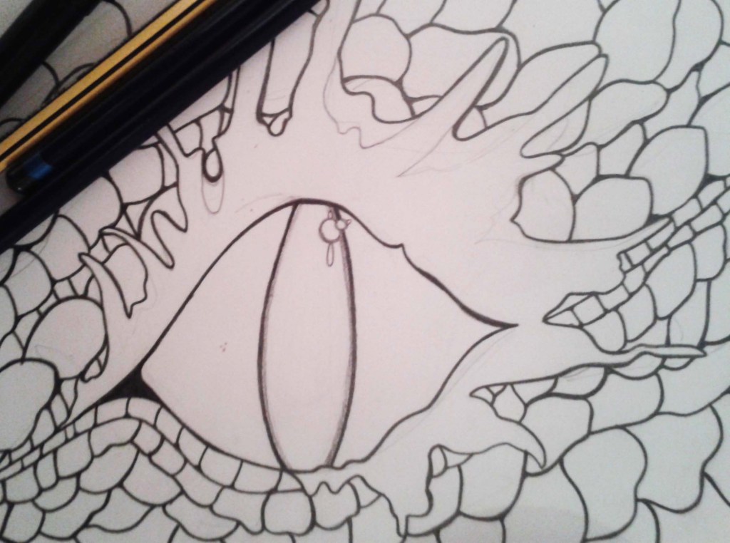 I like to start with a very rough (and faint) pencil drawing and then go back and add the main details. Recently I drew two different dragon eye close ups.