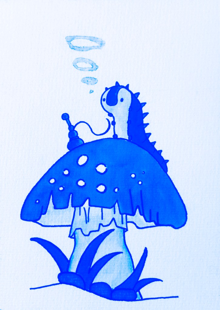 So, enjoy some blue toned caterpillar/mushroom related art…I hope you like it.