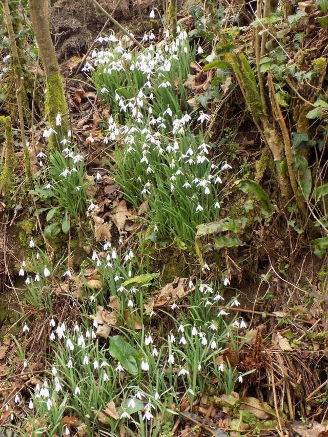 This part of the world is definitely snowdrop country the grow in their hundreds along banks and amongst the trees, even by the roadside. These ones were like a waterfall cascading down the bank and pooling by the roadside.