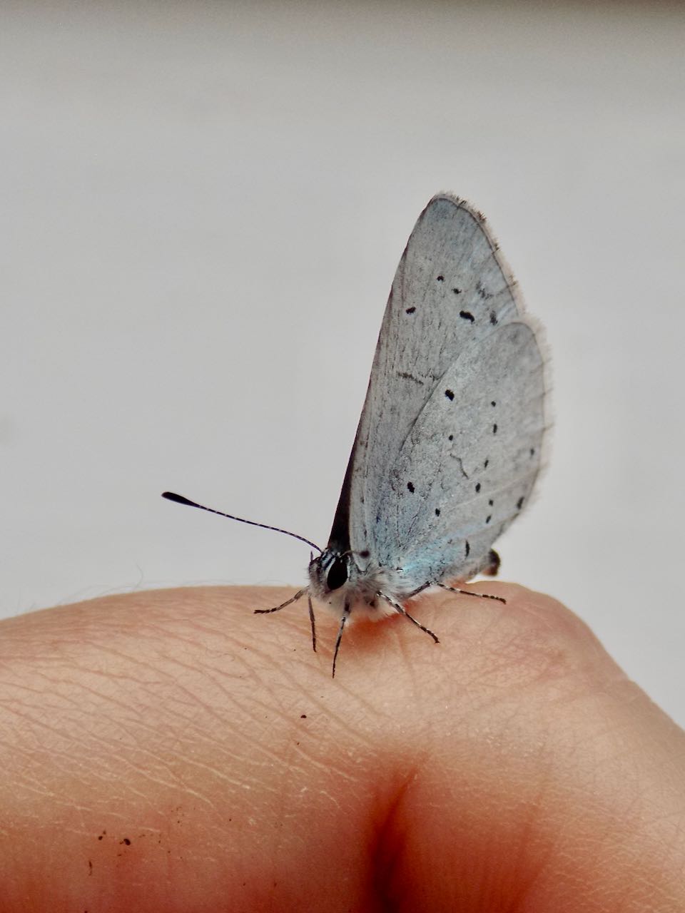 I’ve got a little surprise Butterfly Tale to share with you…I’ve somehow managed to raise a Holly Blue butterfly without even knowing he was there! Basically I’ve got various caterpillar food plants all potted up in my butterfly house in the off-chance that I ever find the caterpillars that eat them. Including an ivy plant which is one of the main food plants of the rather pretty Holly Blue.