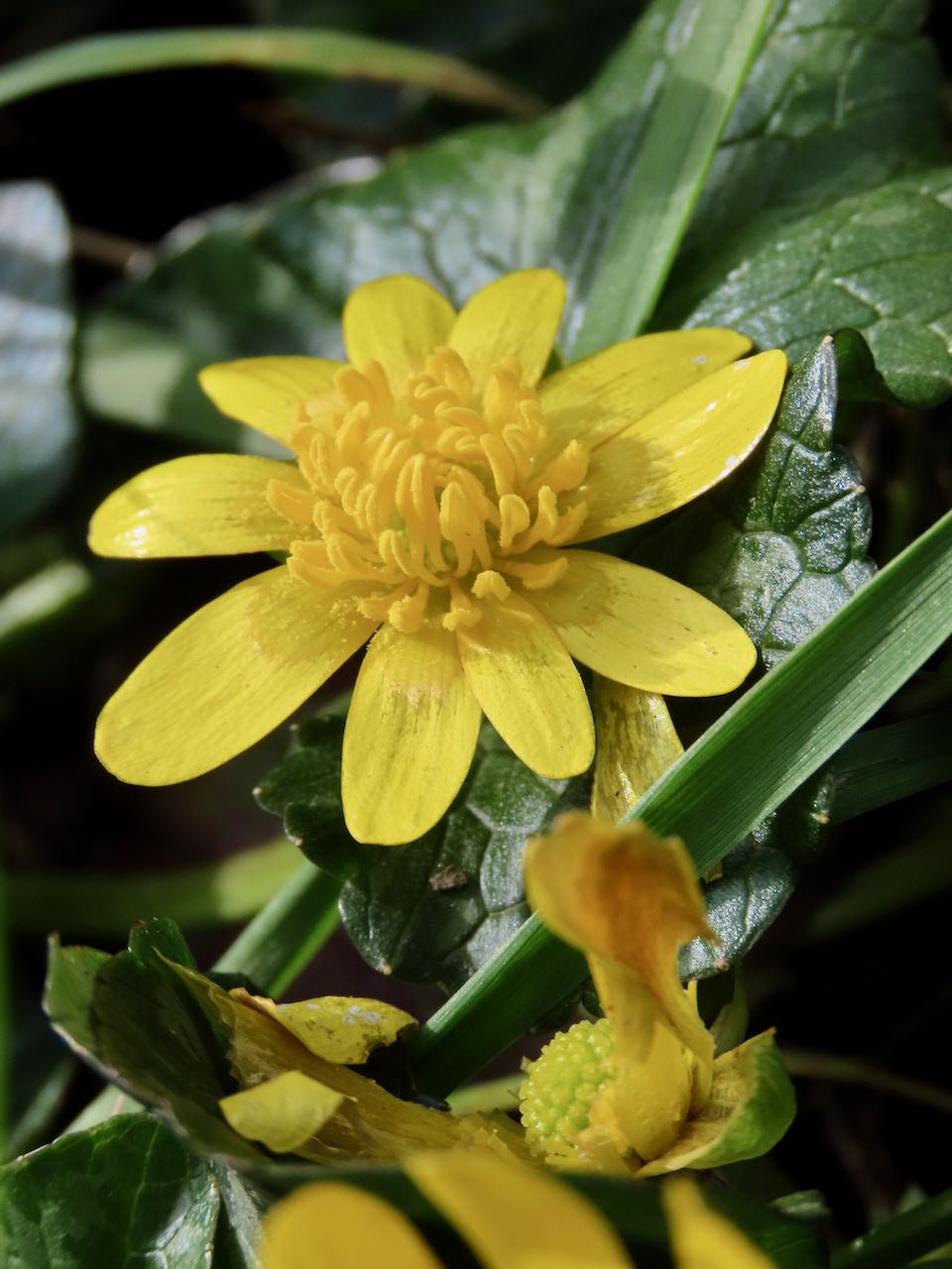 Now, this is a new one for me, I’ve seen these little bright yellow flowers each spring but not really paid them any heed. This flower is Lesser Celandine, a native UK perennial that flowers from January to April and is a member of the buttercup family and is important nectar source for queen bumblebees emerging from hibernation.
