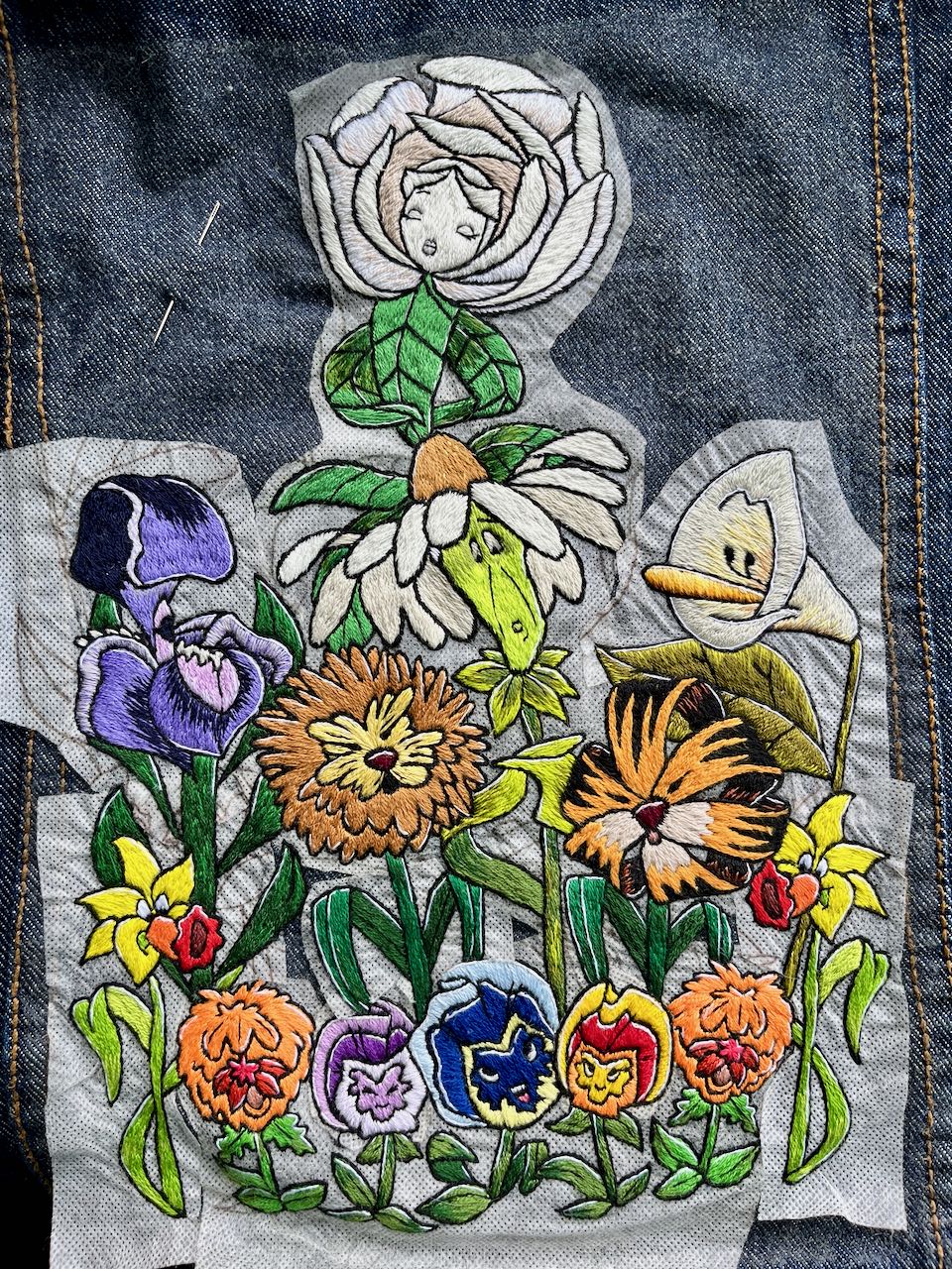 I thought I’d post an update of the progress I’ve been making on my embroidered denim jacket as I feel its really moved on leaps and bounds!