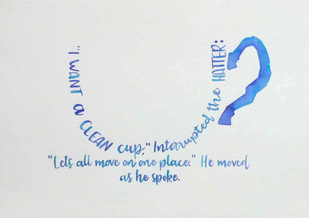 If it hasn’t been mentioned before I love calligraphy art and hand lettering ‘The Secret Alice’ quote is from the Disney movie, but it’s not actually in the book and wasn’t written by Lewis Carroll. But, as quotes go it’s a lovely one and it meant I could write ‘Alice in Wonderland’ in gold ink within the design!